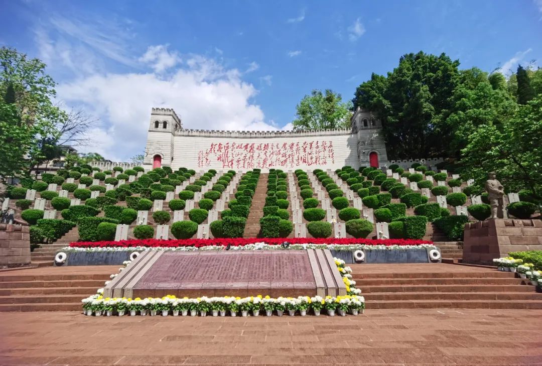 春和景明,,,红军义士陵园松柏苍翠,,,庄重肃穆,,,全体加入活感职员怀着无比敬重的心情手执鲜花,,,沿着红色石梯拾级而上,,,来到红军义士纪念碑前,,,全体党员同志重温入党誓词,,,坚定初心使命。。